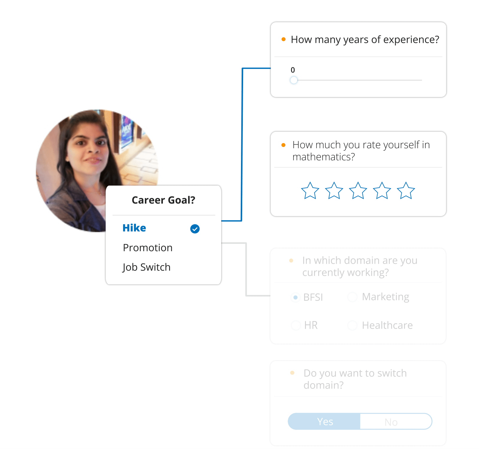 Provide us with essential information about your experience, job, domain, and career goals.
